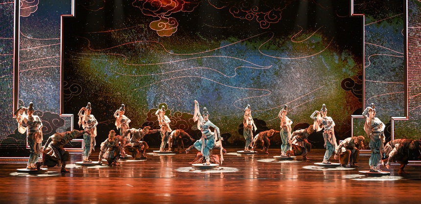 第二篇章“千年同脉流芬芳”中,舞蹈《丝路·胡旋》将当代审美表达融入唐代胡旋舞,带观众走进西域乐舞绘制的丝路长卷;中央民族歌舞团演员朱韬、孔庆学演唱的歌曲《寻迹千年》,展现出中华文明多元一体的厚重与辉煌;北京曲协主席、中国广播艺术团演员李伟建、北京曲艺团演员亢立飞表演的相声《笑动万家》,则体现了京津冀人缘相亲、文脉相通的情缘。